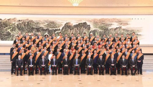 中共中央政治局委員、國務院副總理劉鶴,全國人大常委會副委員長、民建中央主席郝明金,全國政協副主席、全國工商聯主席高云龍出席表彰大會,中央書記處書記、中央統戰部部長尤權主持大會。